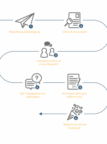 Ihre Qualifikationen passen zu einer der offenen Stellen oder Sie möchten sich initiativ bewerben? Über eine Bewerbung freuen wir uns sehr. Hier möchten wir Ihnen einen Einblick in unseren Bewerbungsprozess geben: